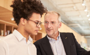 Senior boss and designer in creative team discuss idea
